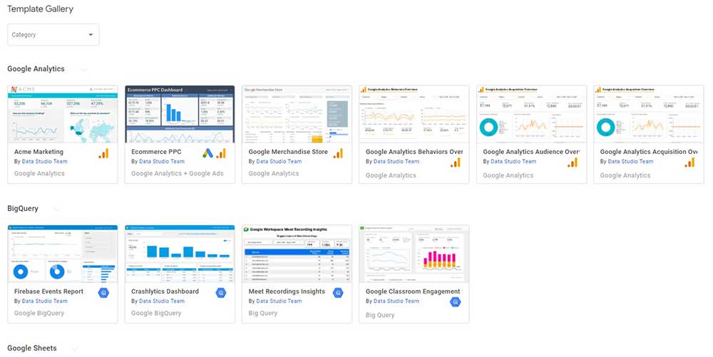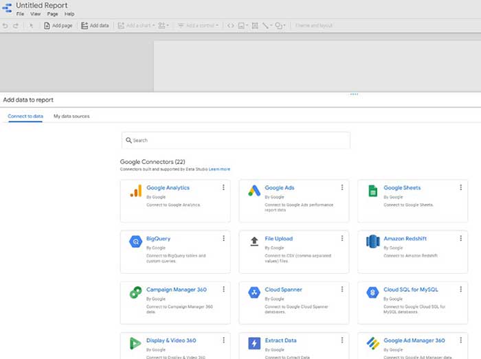 与传统站长工具(Google Search Console)相比,GDS 具有轻松连接各种数据源、一键生成数据报表、高度可视化的图标和表格等优点。GDS 还内置多种数据报告模板,凭借其高配置性和可操作性,可以自定义报告的风格和主题,所以无需担心自己的设计能力。不仅如此,Data Studio还内置22个Google连接器和571个不同的三方连接器,您可以通过这些连接器轻松连接各种数据集,如 Google Ads、Google Analytics、Google Search Console 等分析平台的网站数据,并将这些数据转换为可视化的洞察报告。