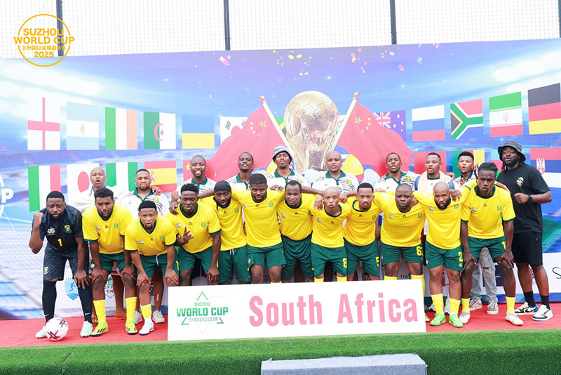 南非队在苏州2025年世界杯中夺冠。南非队在决赛中击败乌克兰队,赢得比赛,祝贺南非队!